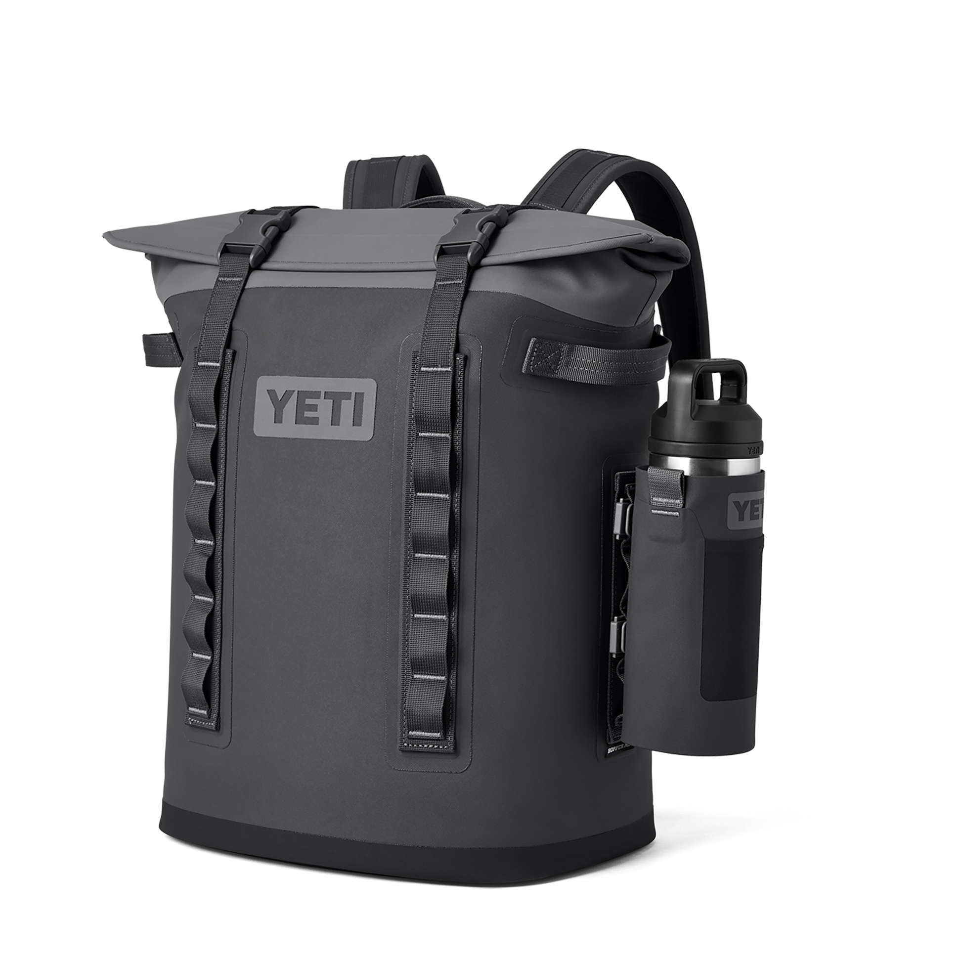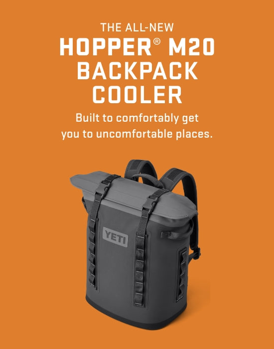 Made for comfort, The YETI Hopper® M20 is a backpack cooler that can carry up to 36 cans of your favorite beverage (or 22 pounds of ice) while keeping your hands free. This cooler’s easy-to-use magnetic closure and wide mouth opening keep cold drinks at your fingertips. Attach accessories such as YETI’s Rambler® Bottle Sling or Sidekick Dry® Gear Case to the cooler’s Hitch Point™ Grid to keep gear ready to grab. The top folds over and clips with two buckles for easy and secure transport to your favorite outdoor spots.