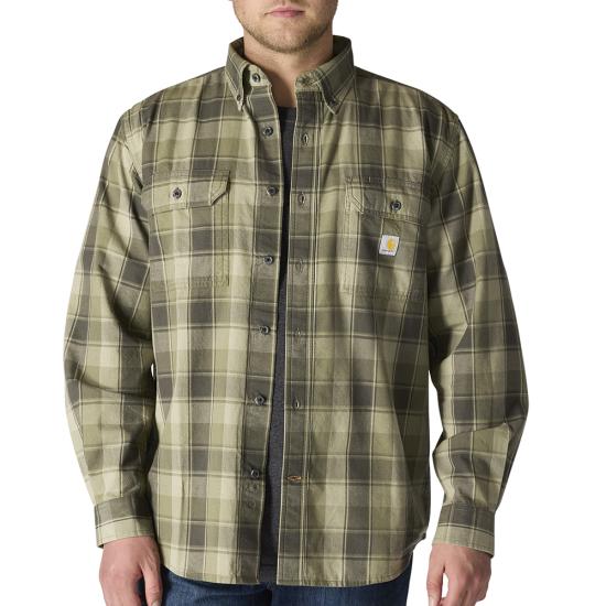 CARHARTT LOOSE FIT MIDWEIGHT CHAMBRAY LONG SLEEVE PLAID SHIRT TALL