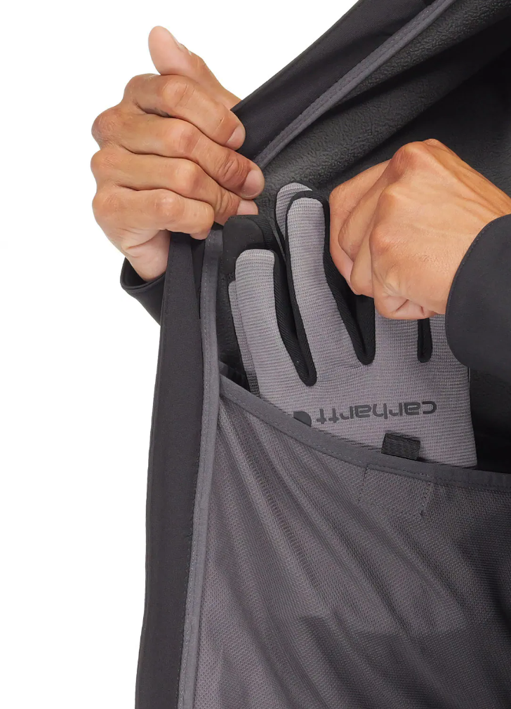 This men's jacket gives you the flexibility to move on the job while providing rugged defense against the elements. The heavyweight softshell construction holds its own through wind, cold, and light precipitation. It features a large pocket on the inside as well as three zip pockets on the outside. Previously known as the Crowley Jacket